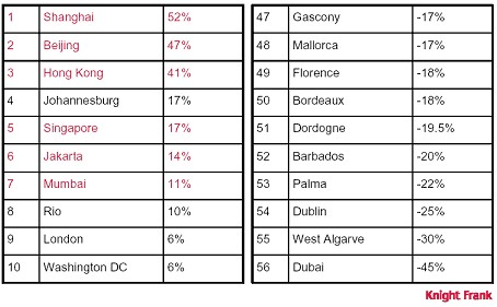 El precio mundial de las viviendas prime se polarizó en 2009, ya que se observó un descenso en la mayoría de los lugares, si bien en determinadas ciudades asiáticas se registró un crecimiento extraordinario