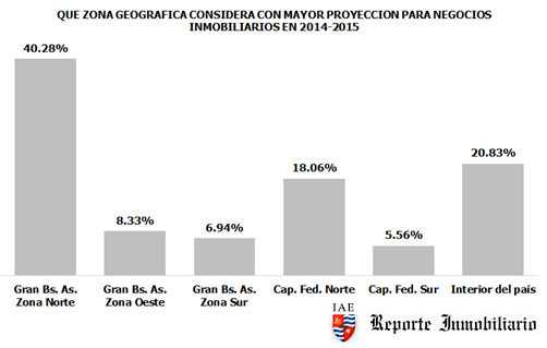 Sin embargo a la hora de prever cual será la ubicación con mayor proyección para negocios inmobiliarios, el 40,28 % de las respuestas coincidieron en que el mejor potencial se encontraría en la zona norte del Gran Buenos Aires.
