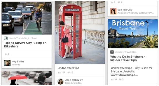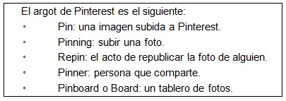 Pinterest es utilizado para compartir fotos en tablones de notas organizados y virtuales. De acuerdo con The Huffington Post, Pinterest tiene casi 1,5 millones de visitantes cada día y recibe más tráfico de referencia a otros sitios que Google+ , YouTube y LinkedIn combinado. Pinterest es una red social en la que podemos usar alfileres virtuales (pins) para colocar en carteleras (boards) las imágenes que nos gustan y compartirlas; imágenes que pueden ser fotos, infografías, vídeos, webs completas.
