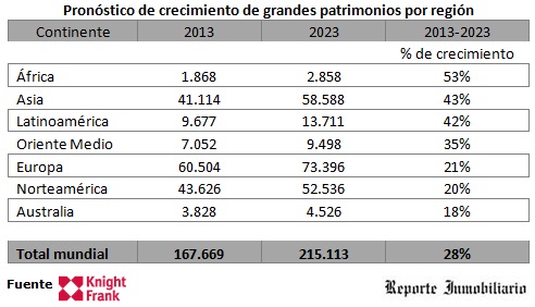 Europa seguirá siendo la primera elección para invertir, pero el mayor crecimiento se dará en África. En este continente la tasa de ricos aumentará un 53% en 10 años.