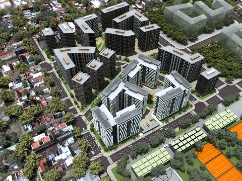 Imagen aérea del conjunto Nuevo Valentin Alsina