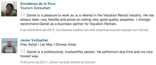 Alentar a los clientes y socios satisfechos a escribir testimonios en nuestro perfil de LinkedIn permitirá que otros lean los avales de terceros y así aumente nuestra credibilidad.