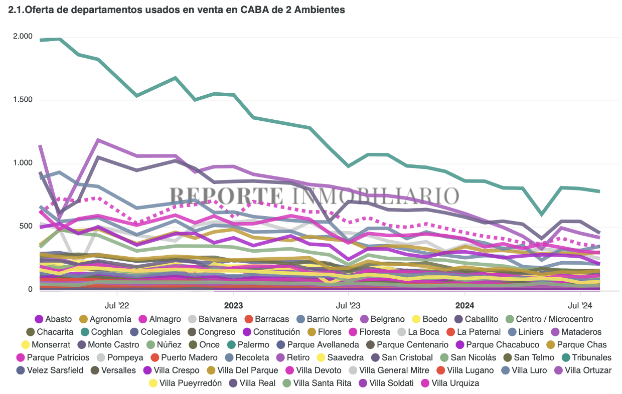 En octubre pasado Reporte Inmobiliario integró a su base de datos la información de un total de 23.946 datos fiables de departamentos usados ofertados a la venta en la ciudad de Buenos Aires de entre uno y cuatro ambientes .
