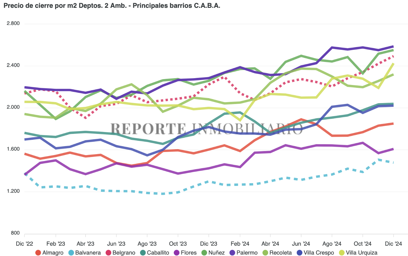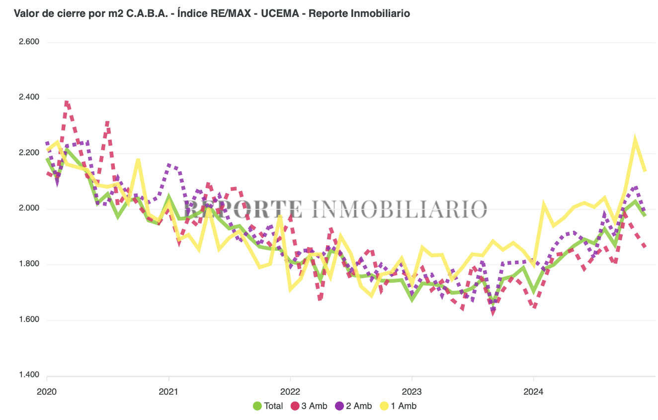 El Índice del M2 Real correspondiente al mes de diciembre del 2024 se ubicó en los 1.975 U$S/m2.