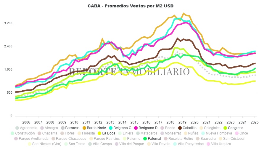 METODOLOGIA EMPLEADA: Se releva un número homogéneo de casos para cada localidad-barrio en función de su densidad edificada en el casco céntrico o en la zona reconocible como de mayor presencia de edificios residenciales en propiedad horizontal. El número de casos relevados es de entre 30 y 60 según la escala de la localidad y se halla predeterminado estadísticamente como una muestra representativa del universo de la oferta histórica. La investigación se lleva adelante bajo la figura de “mystery shopper”. En todos los casos se verifica que el departamento sea usado, integre un edificio de propiedad horizontal con ascensor de calidad estándar, en estado de mantenimiento medio, sin cochera y que el edificio no cuente con amenities. Se chequean las superficies cubiertas y de balcón. El criterio de homogeneización de dichas superficies es del 100% para superficies cubiertas y del 50% para superficies de balcones. Se trata que las unidades estén ubicadas en el piso ubicado en la altura media del edificio. (Cantidad de pisos/2). Todas las ofertas y datos que integran el estudio, son chequeados telefónicamente o via mail, luego de una preselección previa realizada a partir de Buscadores de Propiedades via web o avisos publicados en medios gráficos de alcance nacional, provincial o zonal.