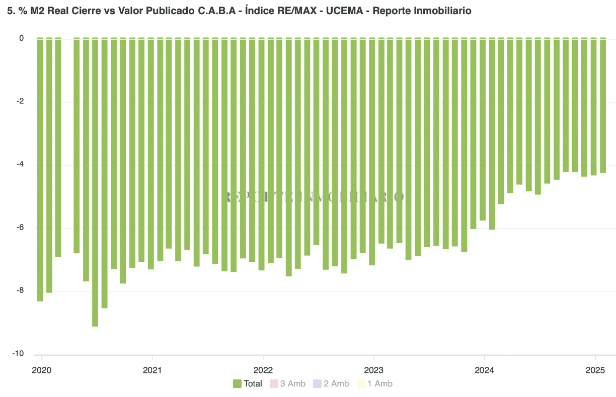 La brecha entre el valor por m2 de las operaciones realizadas en febrero y el último valor de publicación del inmueble, conocida como rango de contraoferta, se ubicó en el -4,18 % en promedio, ligeramente menor que el -4,26 % registrado el mes anterior, manteniéndose por debajo del 5 % durante 11 meses consecutivos.