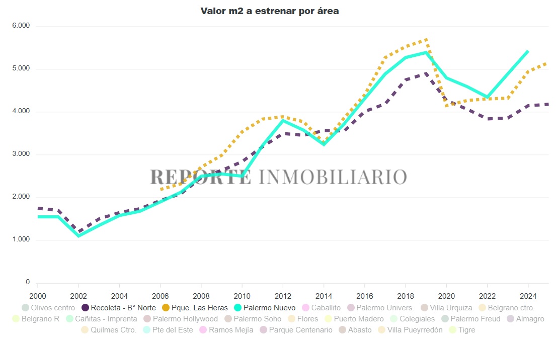 En el relevamiento efectuado por vigésimo año consecutivo por Reporte Inmobiliario en la zona que rodea al Parque las Heras que incluye parte de los barrios de Recoleta y Palermo se verificó otro incremento en la cantidad de metros cuadrados en ejecución, pasando de los 123.123 hace 12 meses a 138.034 en la actualidad; siendo este el segundo más alto registro de la serie.