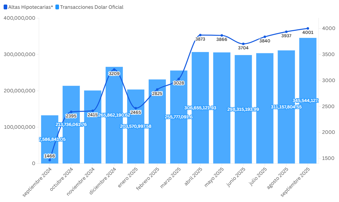 El crédito hipotecario en Argentina continúa mostrando niveles de actividad elevados y superiores a los de 2024, aunque las últimas estadísticas reflejan un endurecimiento gradual de las condiciones financieras informó la Fundación Tejido Urbano esta semana. En septiembre se registraron operaciones por USD 345,5 millones, llevando el acumulado anual a USD 2.263 millones y las altas hipotecarias se estabilizan en torno a 4001 con un acumulado anual estimado de 31.500 créditos. Desde la Fundación afirman que “El mercado mantiene señales de ajuste moderado”.