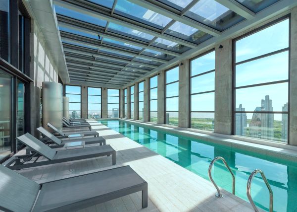 Diseñado por el estudio Adamo–Faiden y construido por Criba, el edificio introduce un nuevo modo de habitar la verticalidad: más de 1.500 m² de espacios comunes distribuidos en distintos niveles —biblioteca, coworking, wellness, gimnasio, piscina y parrillas en el rooftop— permiten que todos los residentes accedan a vistas panorámicas y experiencias compartidas, independientemente del piso donde vivan. Esta configuración refuerza el concepto de “democratizar la altura”, uno de los ejes del proyecto.