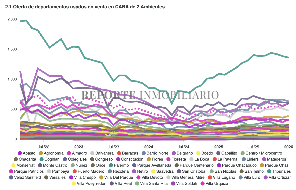 En enero del 2026, Reporte Inmobiliario relevó 29.369 avisos activos correspondientes a departamentos usados en venta en la Ciudad de Buenos Aires.
