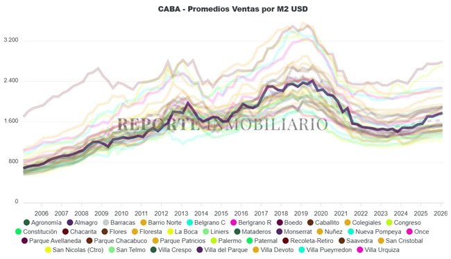 METODOLOGIA EMPLEADA: Se releva un número homogéneo de casos para cada localidad-barrio en función de su densidad edificada en el casco céntrico o en la zona reconocible como de mayor presencia de edificios residenciales en propiedad horizontal. El número de casos relevados es de entre 30 y 60 según la escala de la localidad y se halla predeterminado estadísticamente como una muestra representativa del universo de la oferta histórica. La investigación se lleva adelante bajo la figura de “mystery shopper”. En todos los casos se verifica que el departamento sea usado, integre un edificio de propiedad horizontal con ascensor de calidad estándar, en estado de mantenimiento medio, sin cochera y que el edificio no cuente con amenities. Se chequean las superficies cubiertas y de balcón. El criterio de homogeneización de dichas superficies es del 100% para superficies cubiertas y del 50% para superficies de balcones. Se trata que las unidades estén ubicadas en el piso ubicado en la altura media del edificio. (Cantidad de pisos/2). Todas las ofertas y datos que integran el estudio, son chequeados telefónicamente o via mail, luego de una preselección previa realizada a partir de Buscadores de Propiedades via web o avisos publicados en medios gráficos de alcance nacional, provincial o zonal.