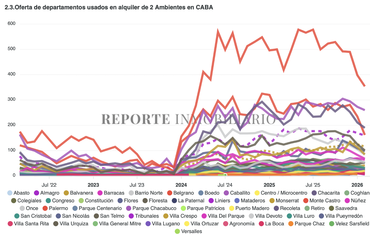 La información correspondiente a febrero de 2026 se construye a partir del análisis de 5.599 casos relevados de ofertas activas de alquiler tradicional en pesos para unidades usadas en la Ciudad de Buenos Aires. Sobre esta base empírica, consistente y validada, el informe permite desagregar la oferta disponible por barrio y relevar con precisión los valores mínimos, promedio y máximos, tanto por unidad como por metro cuadrado.
