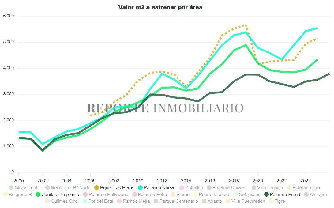 METODOLOGÍA EMPLEADA: para homogeneizar el criterio de comparación se toman en todos los casos la tipología de la cual hay más unidades dentro del emprendimiento, en todos los casos estos son sin valor de cochera, si algún departamento se comercializa con esta se le descuenta el valor. Se toman departamentos en 4º, 5º o 6º piso en todos los casos, a excepción de que no queden a la venta en los pisos citados. Las superficies informadas son homogeneizadas (100% sup propia cubierta y 50% sup. de balcón).